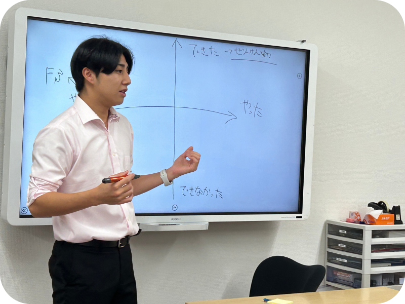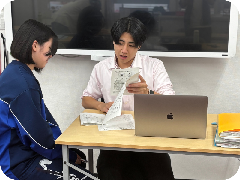 目標/計画/振り返りを講師と毎日記入。専用の桜手帳でPDCAサイクルを可視化。講師と一緒に計画を立て、振り返りを通じて自己管理能力を育成します。