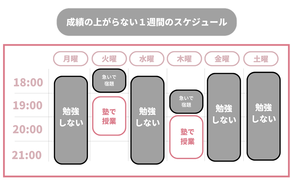オンライン+通塾で1日1hライブ監視。塾がない日も課題+出席確認で習慣的に学習できる環境を作ります。